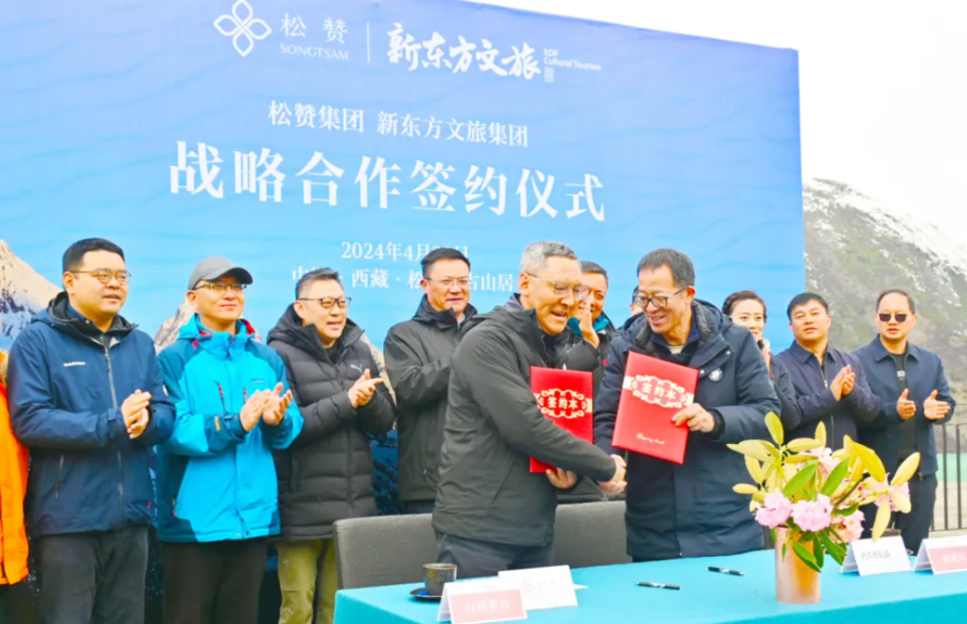 2024年4月30日,新东方文旅与松赞集团在西藏来古山居签署战略合作协议。新东方创始人俞敏洪与松赞集团董事长白玛多吉共同出席签约仪式。