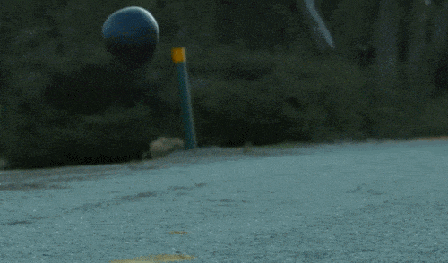 接下来是涂层西瓜落地时的慢动作画面。可以看到,在落地的瞬间,强烈的冲击导致西瓜下半部分被压扁,西瓜表面的涂层也因此受到拉扯。涂层没有裂开,而是迅速回弹,甚至让西瓜像皮球一样弹起。